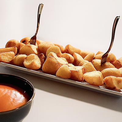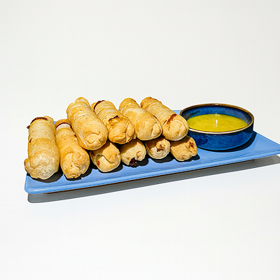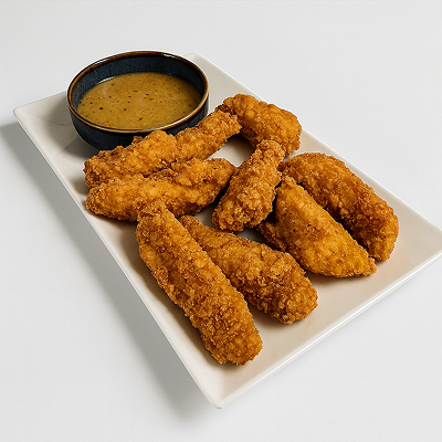 Solomillo de pollo, harina de trigo, especias y salsa de soja. 8/10 unds aprox.
